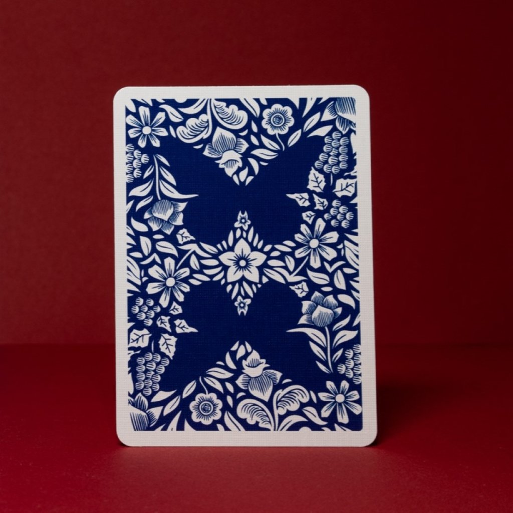 Die Gesichter sind im klassischen USPC-Design mit abgewandelten Farben gestaltet und haben einen Kopf. Alle vier Asse weisen große Buchstaben mit einem beeindruckenden Blumenmuster auf.