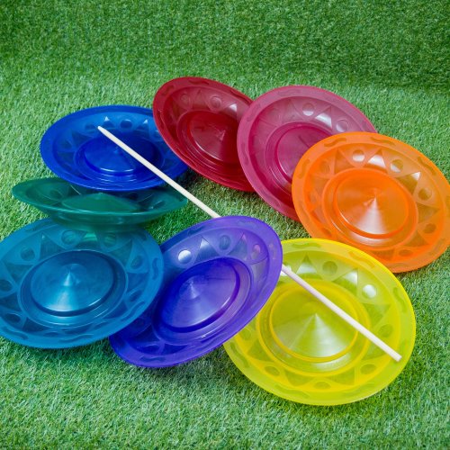 Probieren Sie es aus!Wenn du bereits weißt, wie man mit einem Teller jongliert, oder etwas Schwierigeres ausprobieren möchtest, versuche es mit einem Teller von Henry's. Das erste Ziel ist es, den Teller mit dem Stock zu drehen. Danach kannst du mit Tricks beginnen - von Stock zu Stock und Finger weiterreichen, auf verschiedene Arten werfen und fangen. Diese Platte ist nicht so flexibel wie die für Anfänger, daher ist sie eher für fortgeschrittene Spieler geeignet. Es gibt zwei Drehpunkte auf der Platte - weiter von der Mitte entfernt (leichtere Schwierigkeit) und näher an der Mitte (schwierigere Schwierigkeit). Zusammen mit der Platte erhältst du einen schönen Holzstock, der besser zur Platte passt als die Plastikstöcke. |