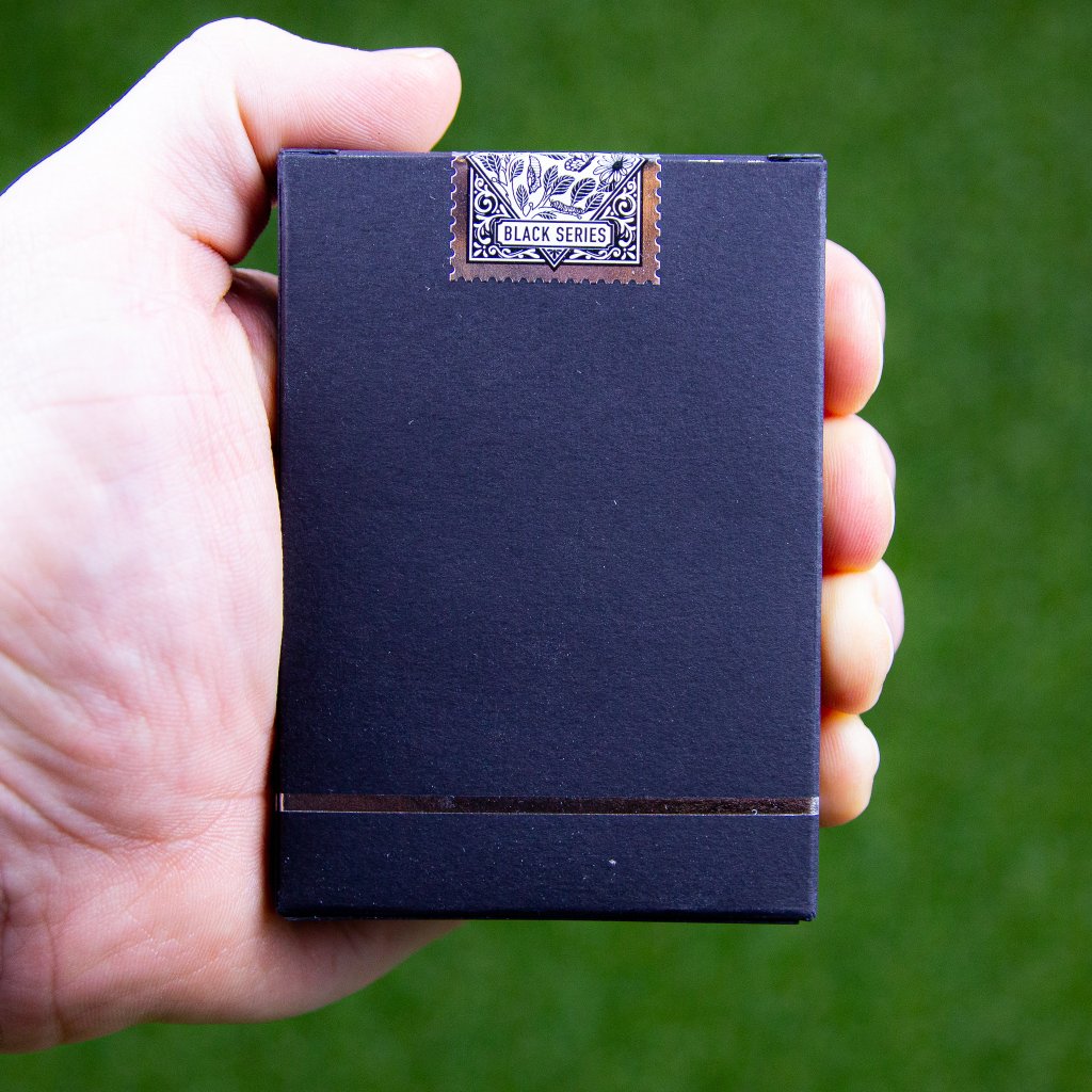 - Die Rückseite der Karten ist eine Kombination aus mattem Schwarz und glänzendem Silber.
